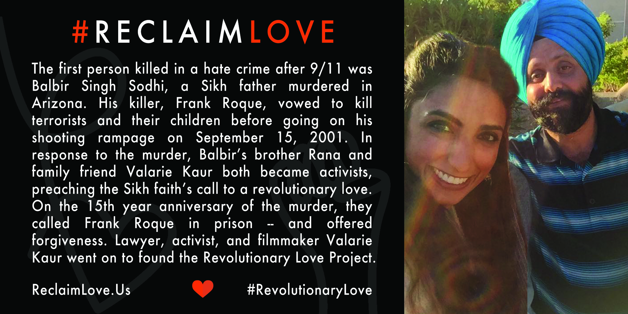 Scroll down for graphics or click here for social media kit packed with memes you can use — it’s really easy. You can post any memes or sample tweets that move you. You will see that we are featuring stories of Muslim, Sikh, and Hindu Americans who model #RevolutionaryLove. We are also celebrating women and women of color leading the movement to end abuse.