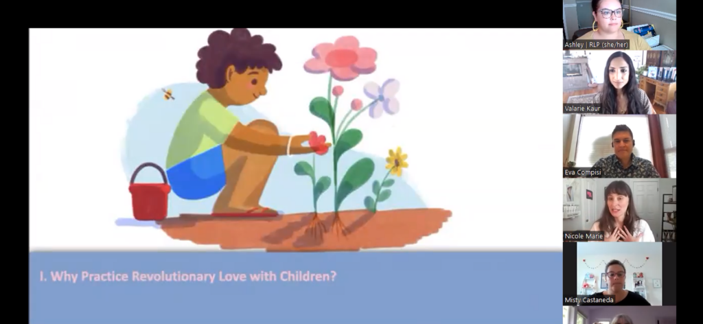 “Revolutionary love is a framework that I work with consistently now. I don’t think I will ever work without it. I’ve always supported social-emotional and moral development in children, and this framework has elevated these areas of children’s development. Having a more powerful vocabulary provides a more interesting way to communicate with children about the challenges and emotions we all have. It’s changed me. It’s part of what and how I teach now.”