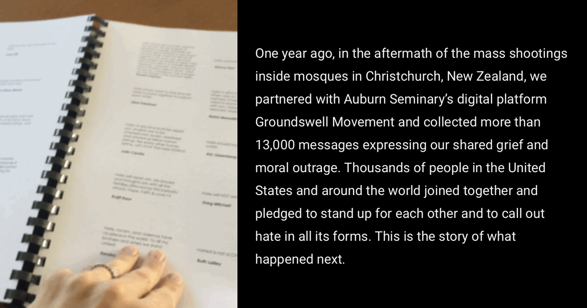 One year ago, in the aftermath of the mass shootings inside mosques in Christchurch, New Zealand, we partnered with Auburn Seminary’s digital platform Groundswell Movement and collected more than 13,000
