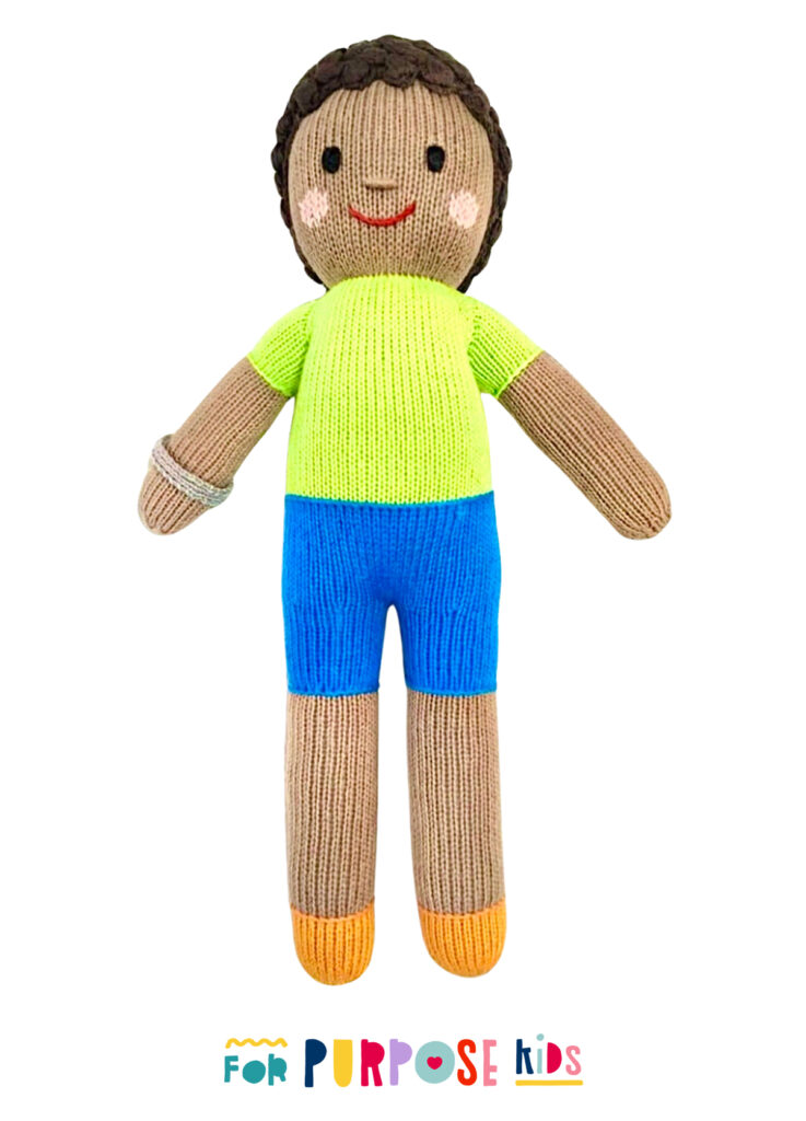 Each doll is hand-knit with love by Artisans in Peru, working within a certified fair trade organization and made with 100% cotton yarn, using non-toxic, eco-friendly dyes.